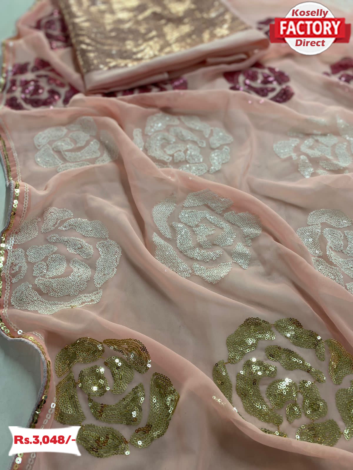SAREE : GEORGETTE WITH SEQUINS EMBROIDERED WORK 5.5 meters SEQUINS WORK COMES ON ALL OVER THE SAREE