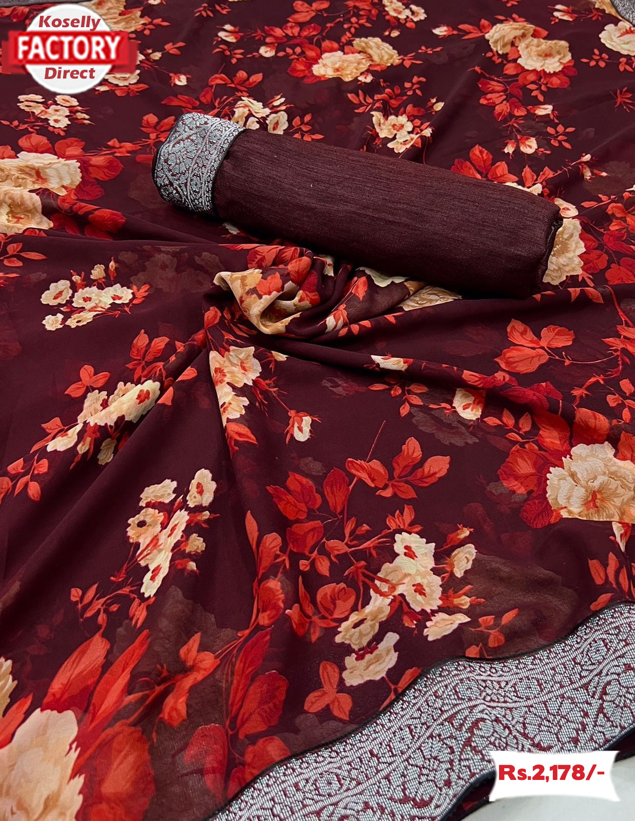Fabric Details - Heavy Weightless Flower Mill Print And Weaving Zari Stitch Border With Banglori Silk Blouse 👚