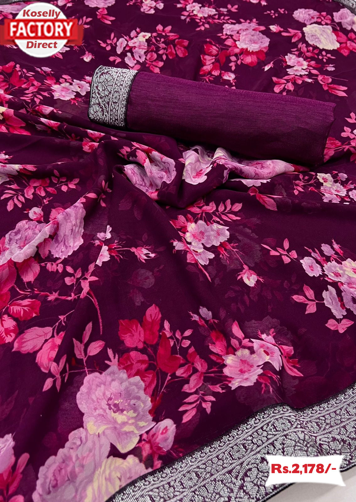 Wine Floral Saree With Zari Weaving Border