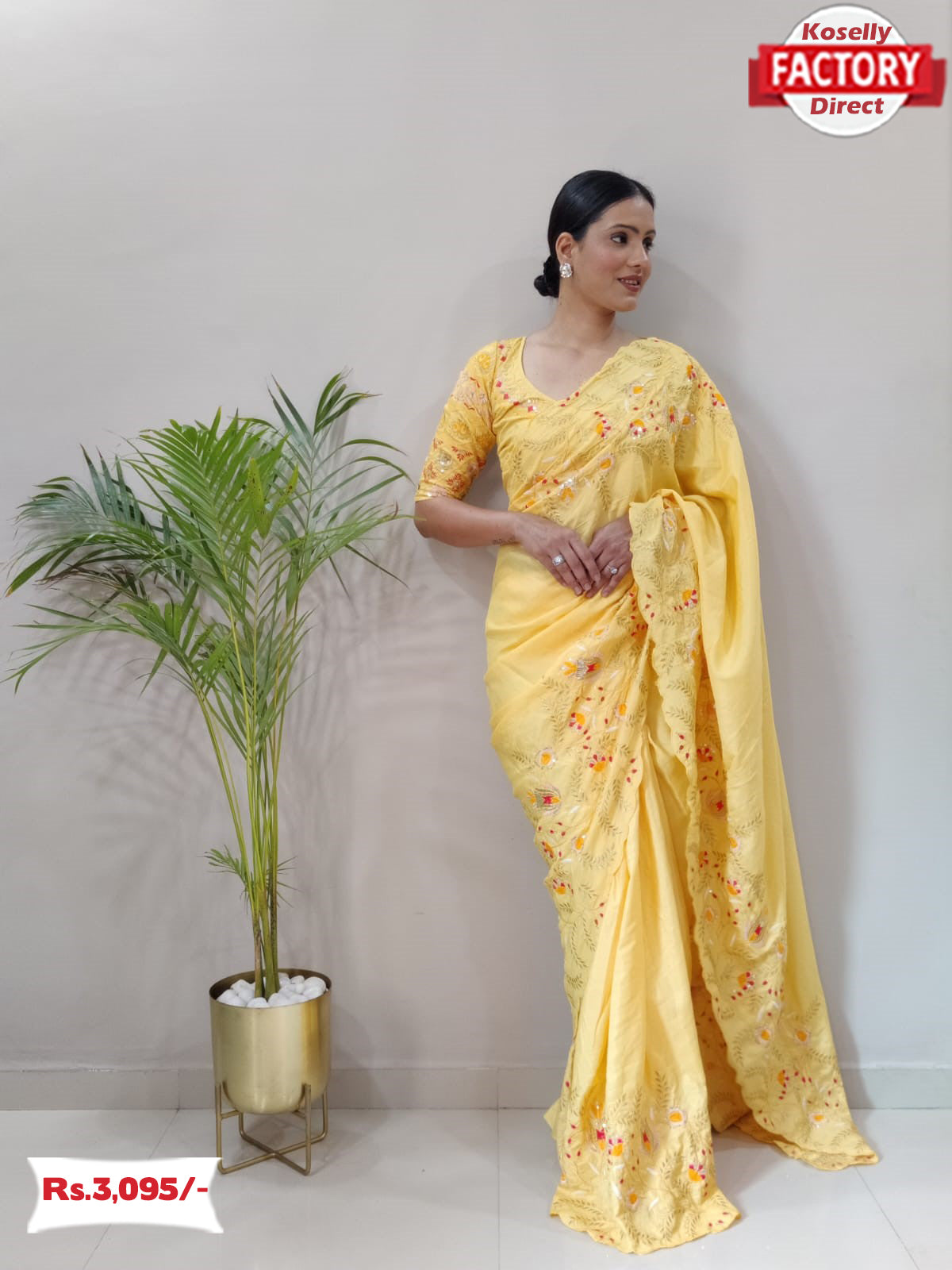 Yellow Dola Silk Saree With Embroidery Work and Belt