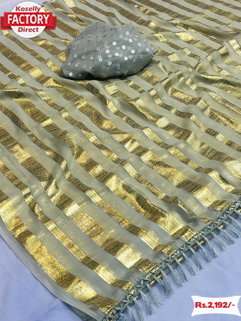 Ash Chiffon Golden Zari Saree