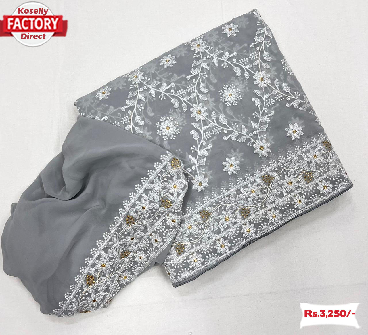 Premium Georgette Saree with viscose thread work in Chikankari style