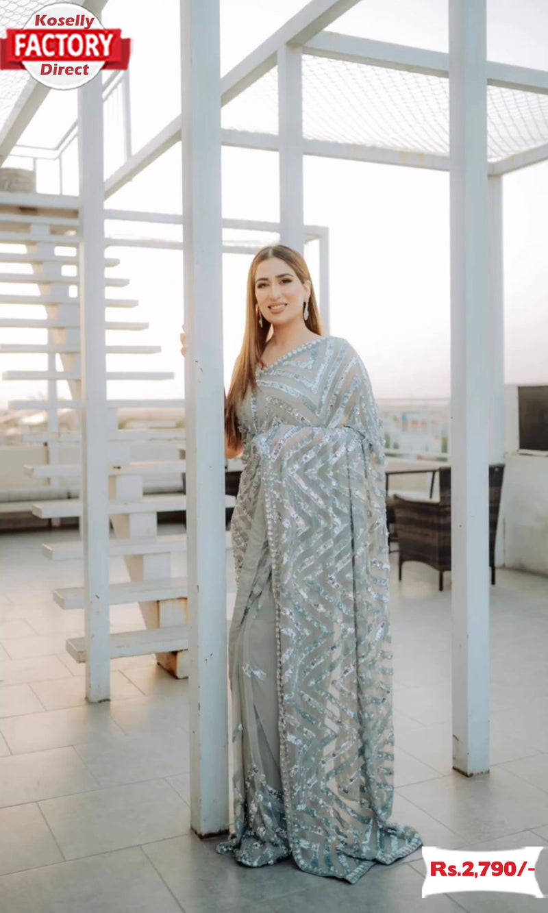 Classic and elegant, this saree will be a perfect addition to your ethnic wardrobe, offering a soothing adornment of sequins work making it impeccable.