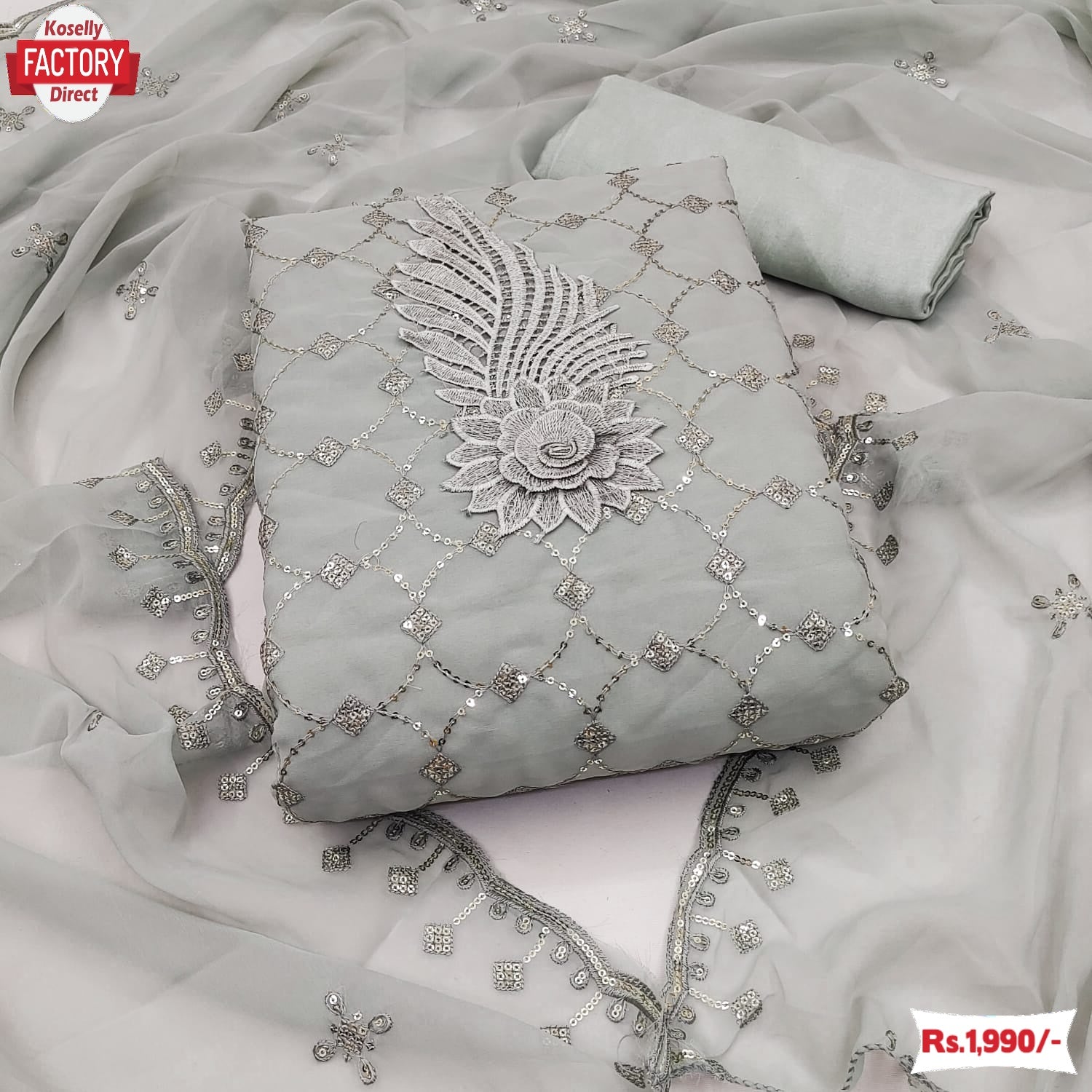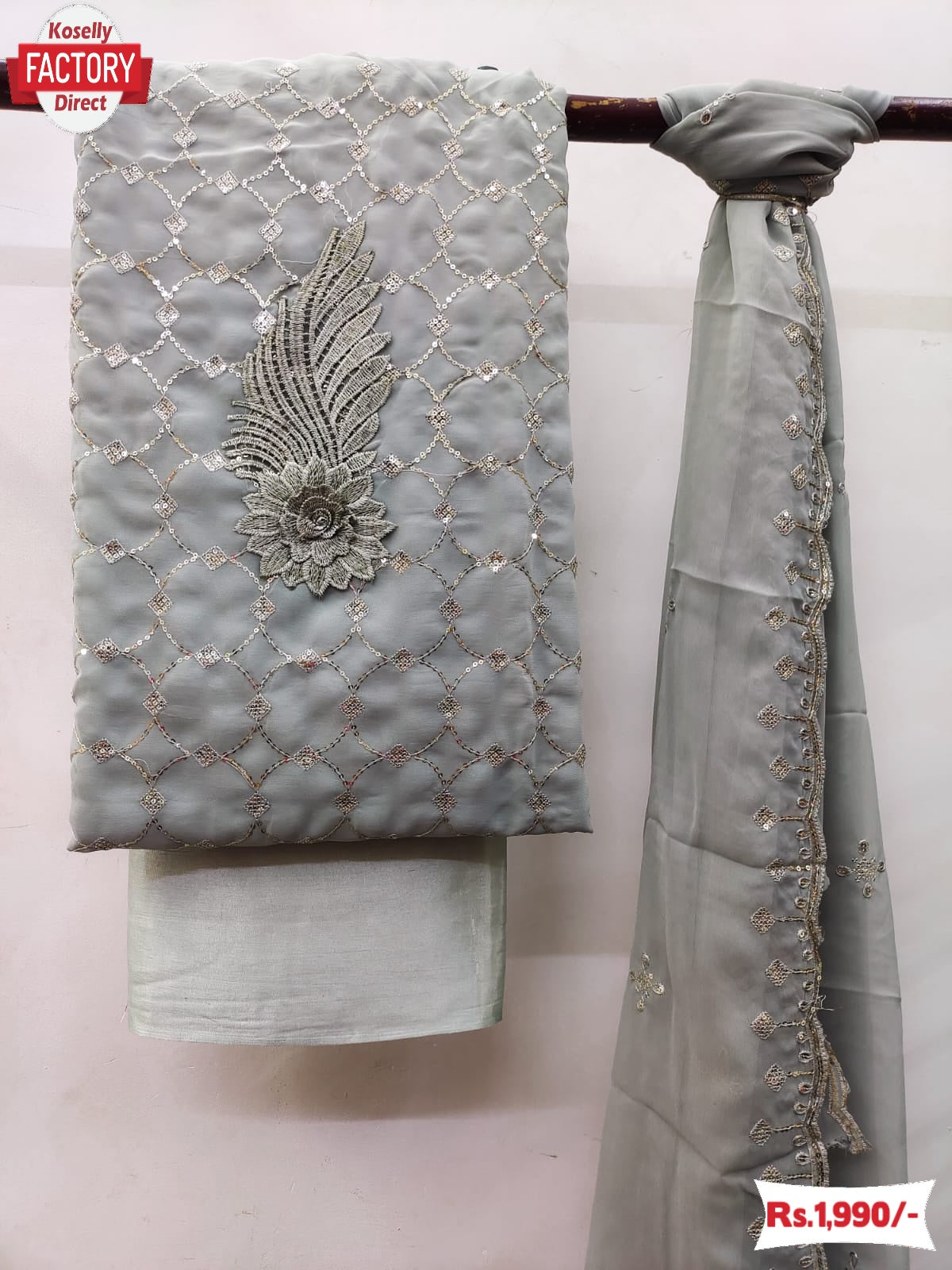 Ash Georgette Sequins Embroidered Kurtha Suruwal Piece