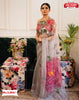 Beautiful print in organza fabric all over saree covered with heavy handcrafted work all over and grey silk blouse.