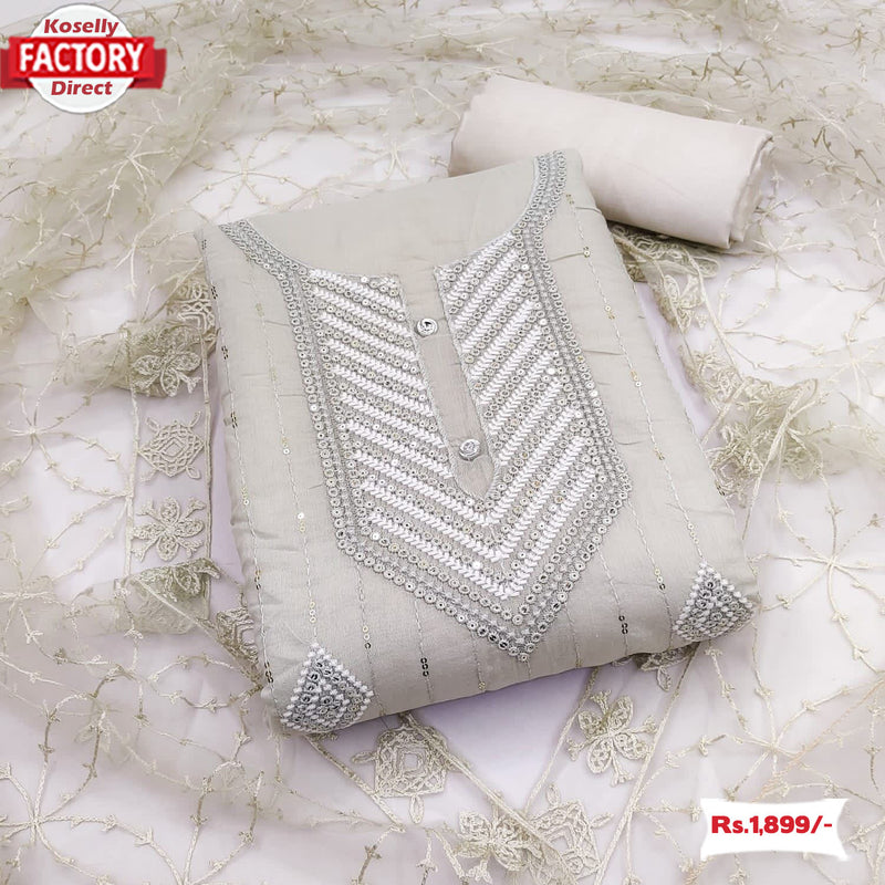 Ash Modal Embroidered Kurtha Suruwal Piece