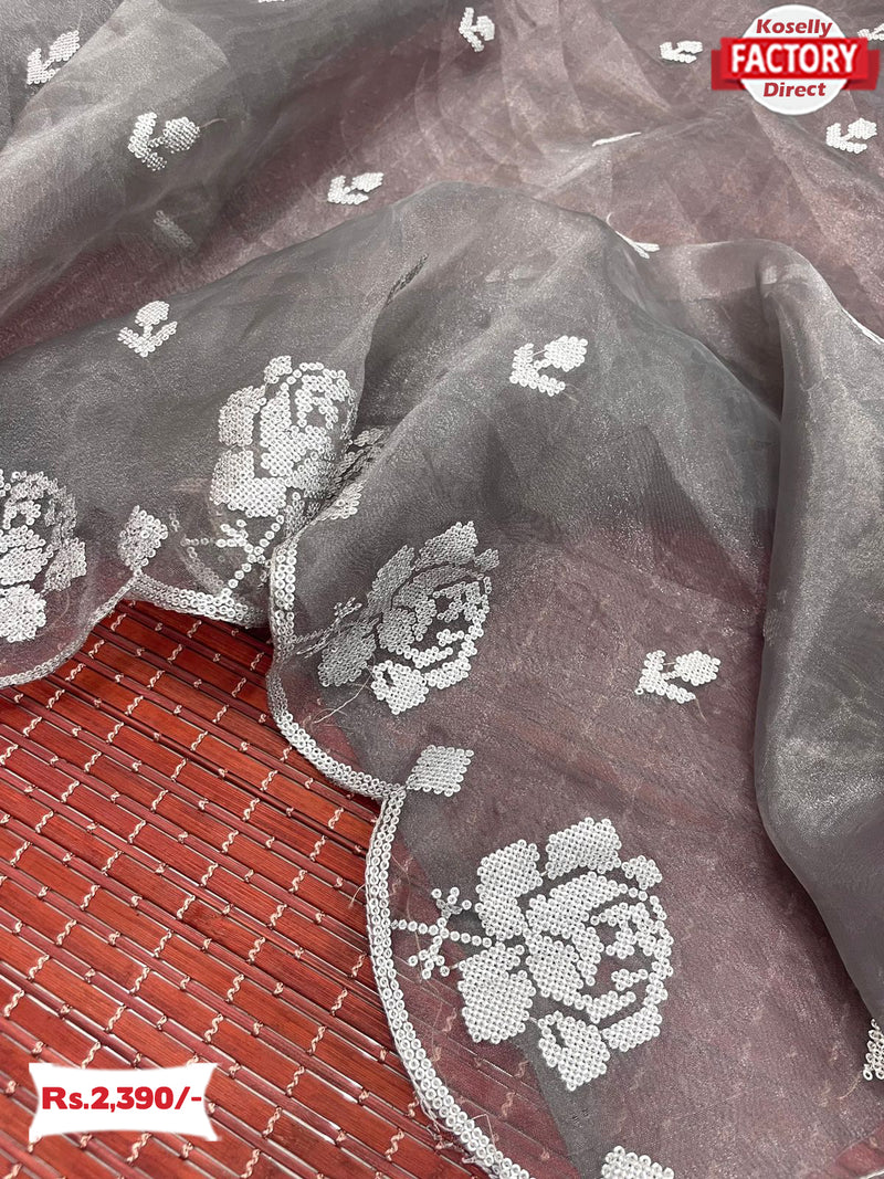 Ash Organza Cross Sequins Saree