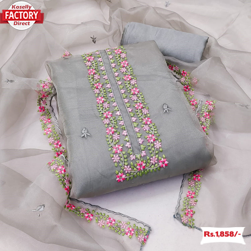 Ash Organza Multi-Embroidery Kurtha Suruwal Piece