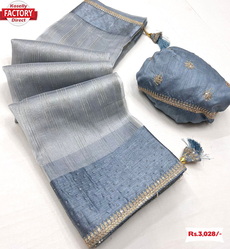 Fabric: Soft Organza Jacquard Weaving Fabric With Stone Work And Sequins Coding Work Border With Fancy Latkan And Banglori Embroidery Work Blouse