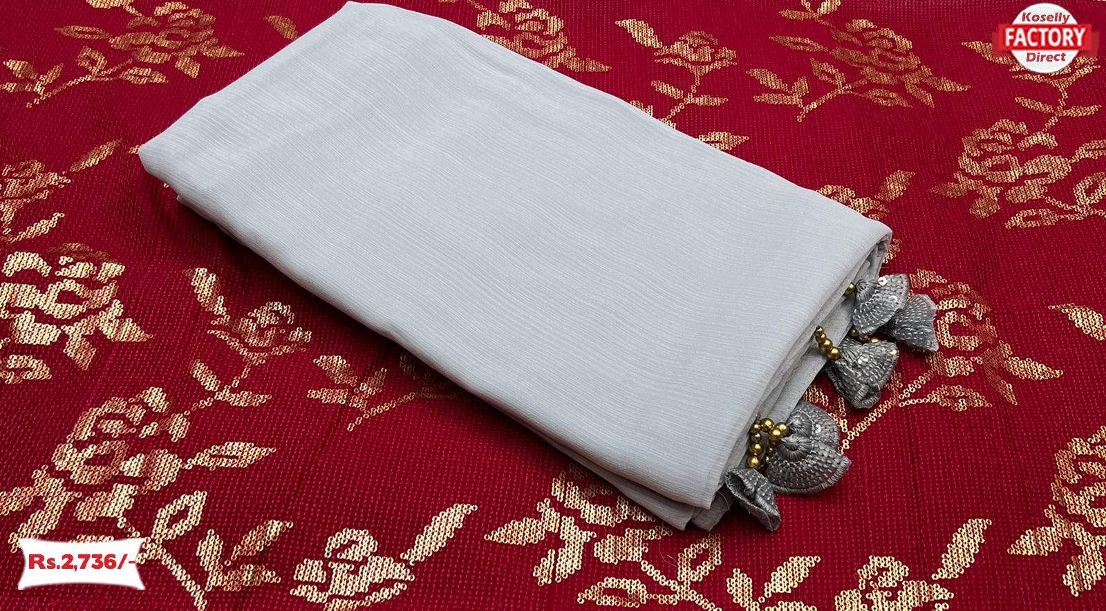 Ash Pure Chiffon Saree With Tassels