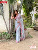 Pure soft georgette silk saree with beautiful 3mm sequins and embroidery work panel pallu with lace border and latkan.