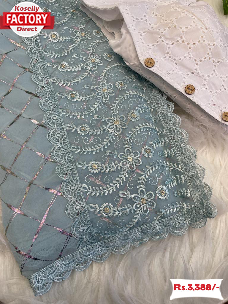 Ash Pure Georgette Silk Saree With Foil and Sequins Work
