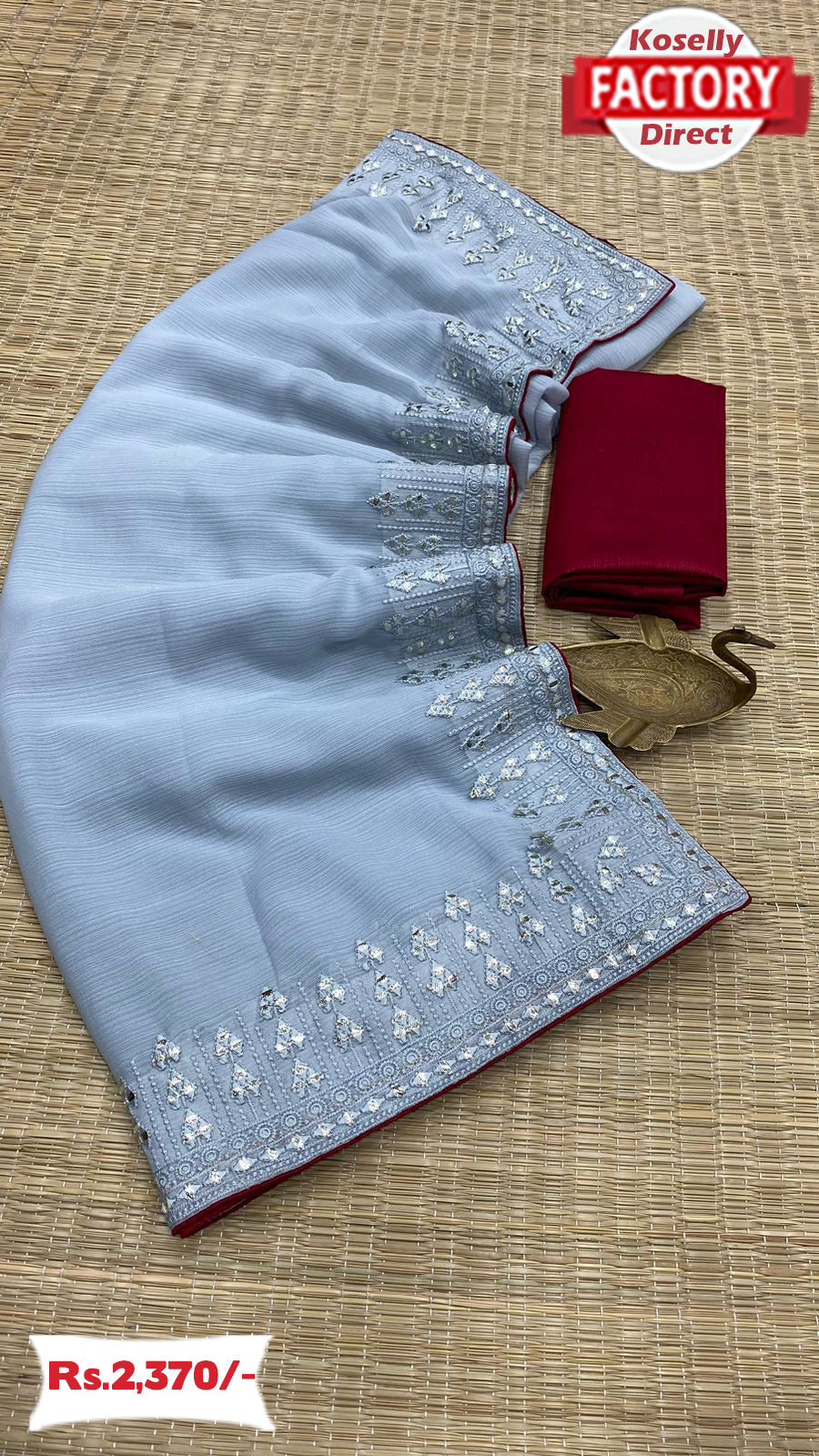 Ash Zomato Chiffon Embroidered Saree