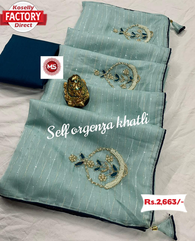 *SAREE WEAVED BY THREAD and sequins in fabric and heavy hand work khatli work butta with rich look saree with fancy latkans.