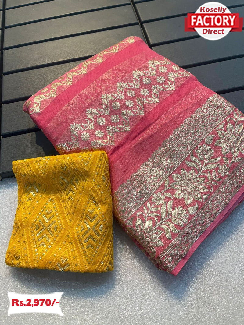 Baby Pink Pure Georgette Banarasi Rich Zari Saree