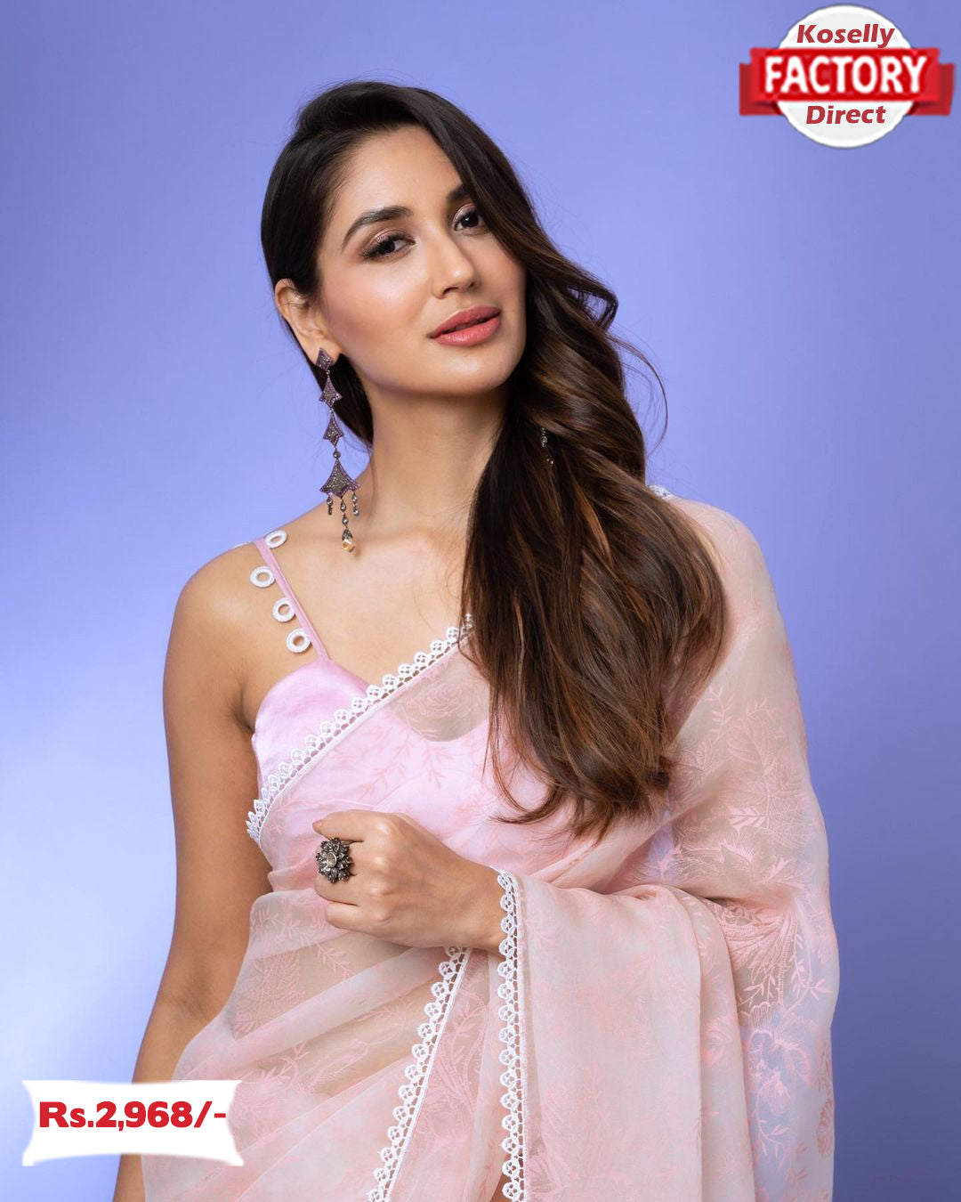 Baby Pink Pure Organza Chikankari Fancy Saree
