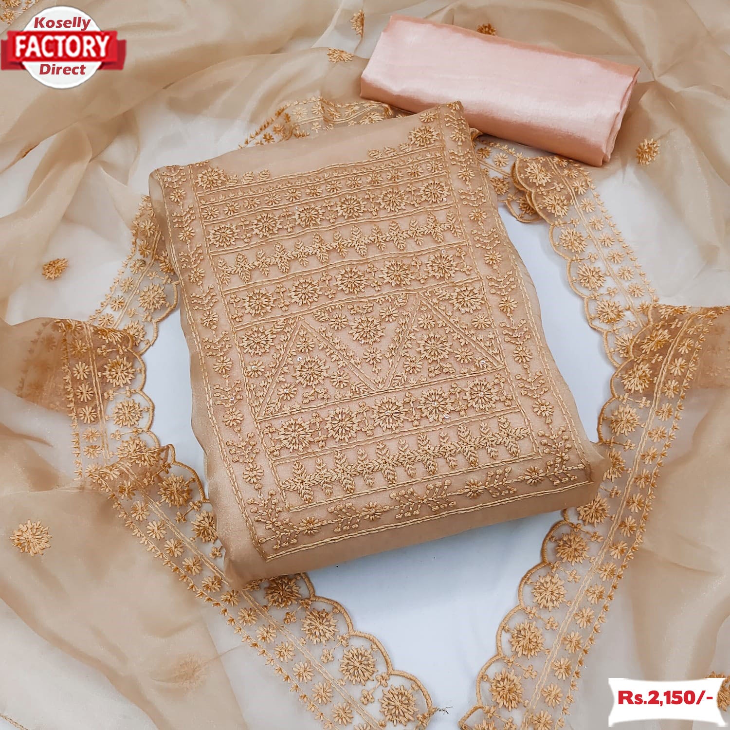 Beige Organza Embroidered Kurtha Suruwal Piece