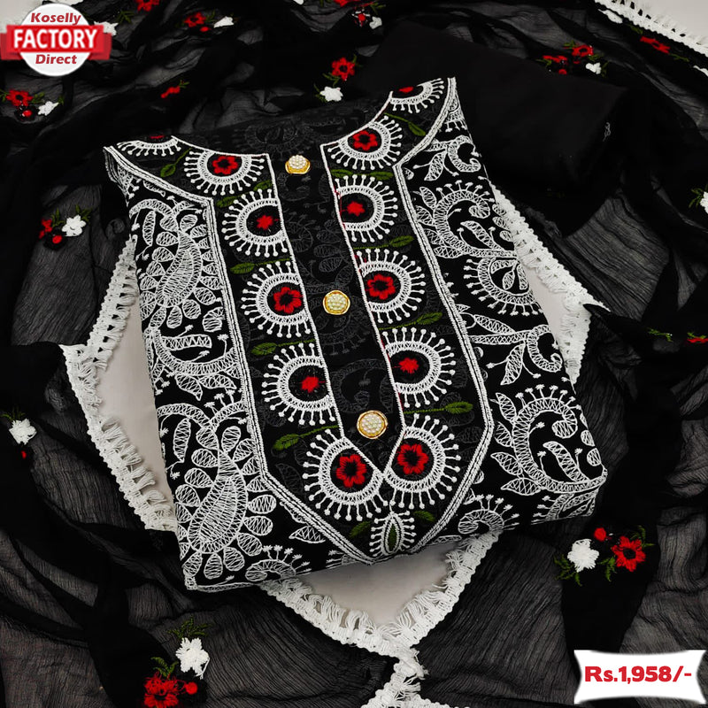 Black Chikankari Embroidered Kurtha Suruwal Piece
