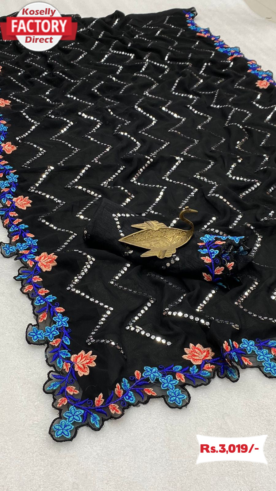 👌🏻 Beautiful georgette saree with embroidery all over with foil mirror work and cut-work designer border.