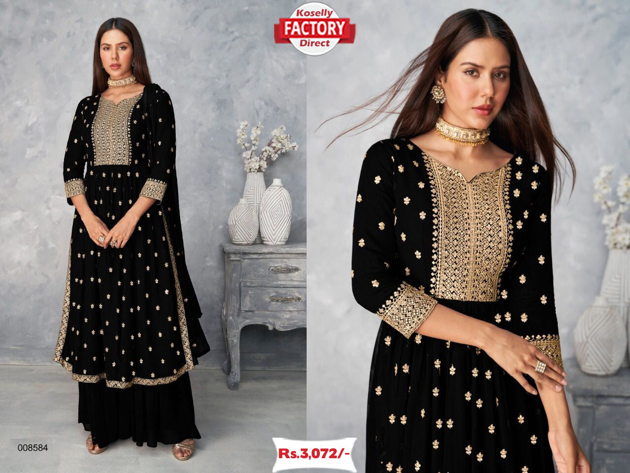 Black Embroidered Semi-Stitched Kurtha Palazzo Set