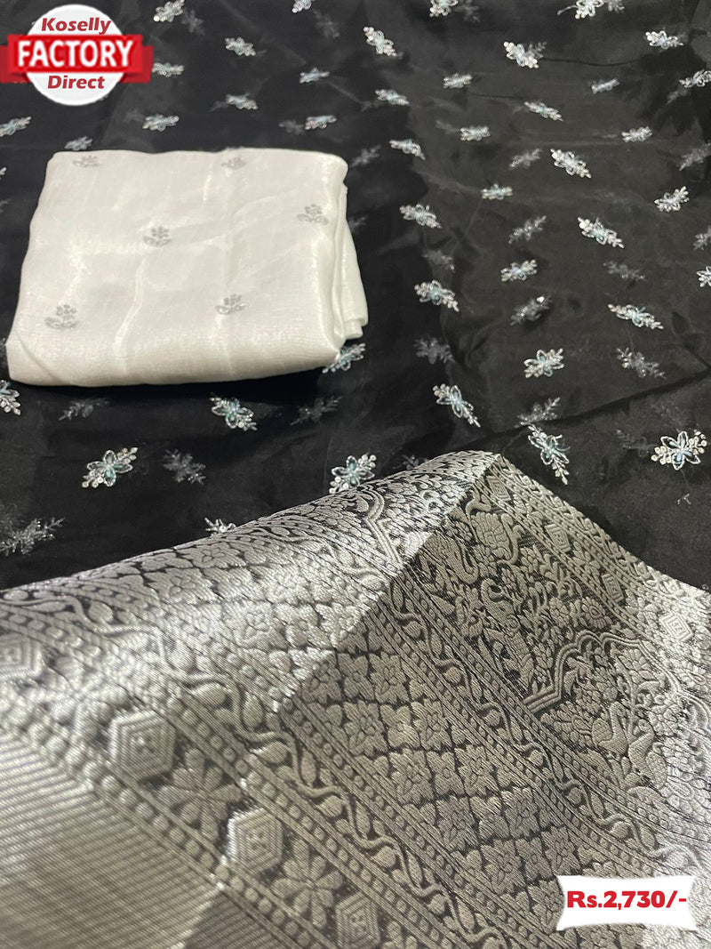 New Kanchipuram organza with full saree 5.50 worked with multi sequins butti work for an attractive look.