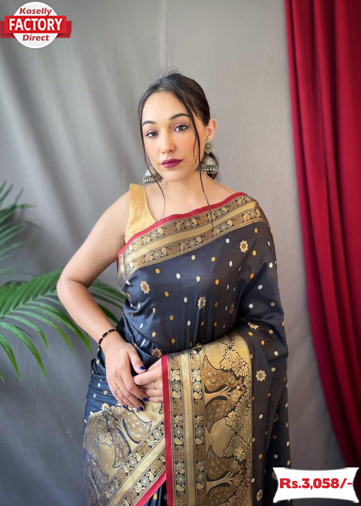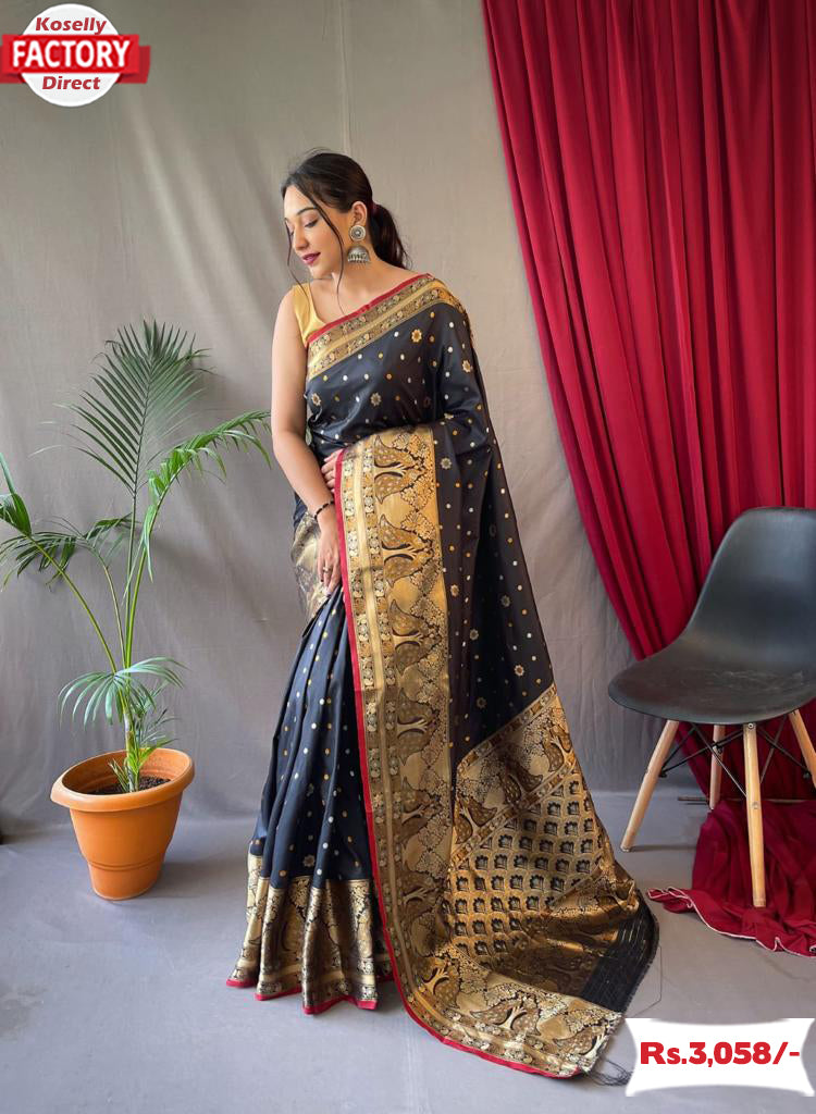 Black Pure Soft Silk Kanchipuram Saree