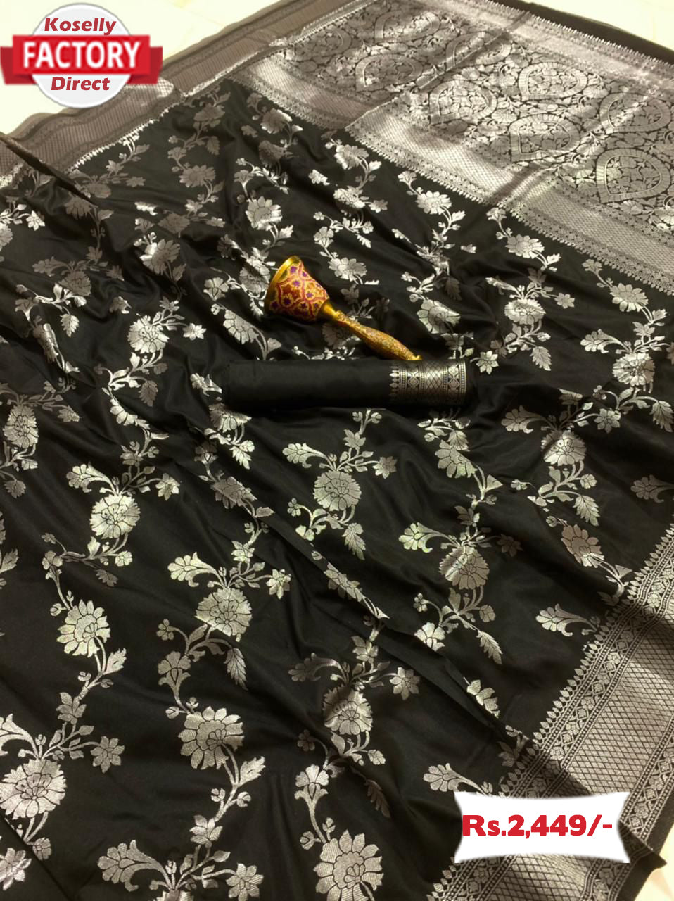Banarasi Handloom very soft silver silk weaving saree with rich pallu and rich heavy zari border with full weaving jaal design and blouse with zari work. Perfect for festive occasions and parties.