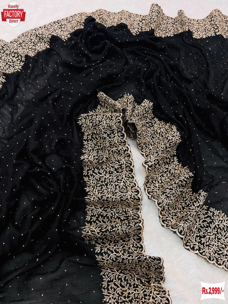Black Vichitra Silk Embroidered And Stone Work Partywear Saree