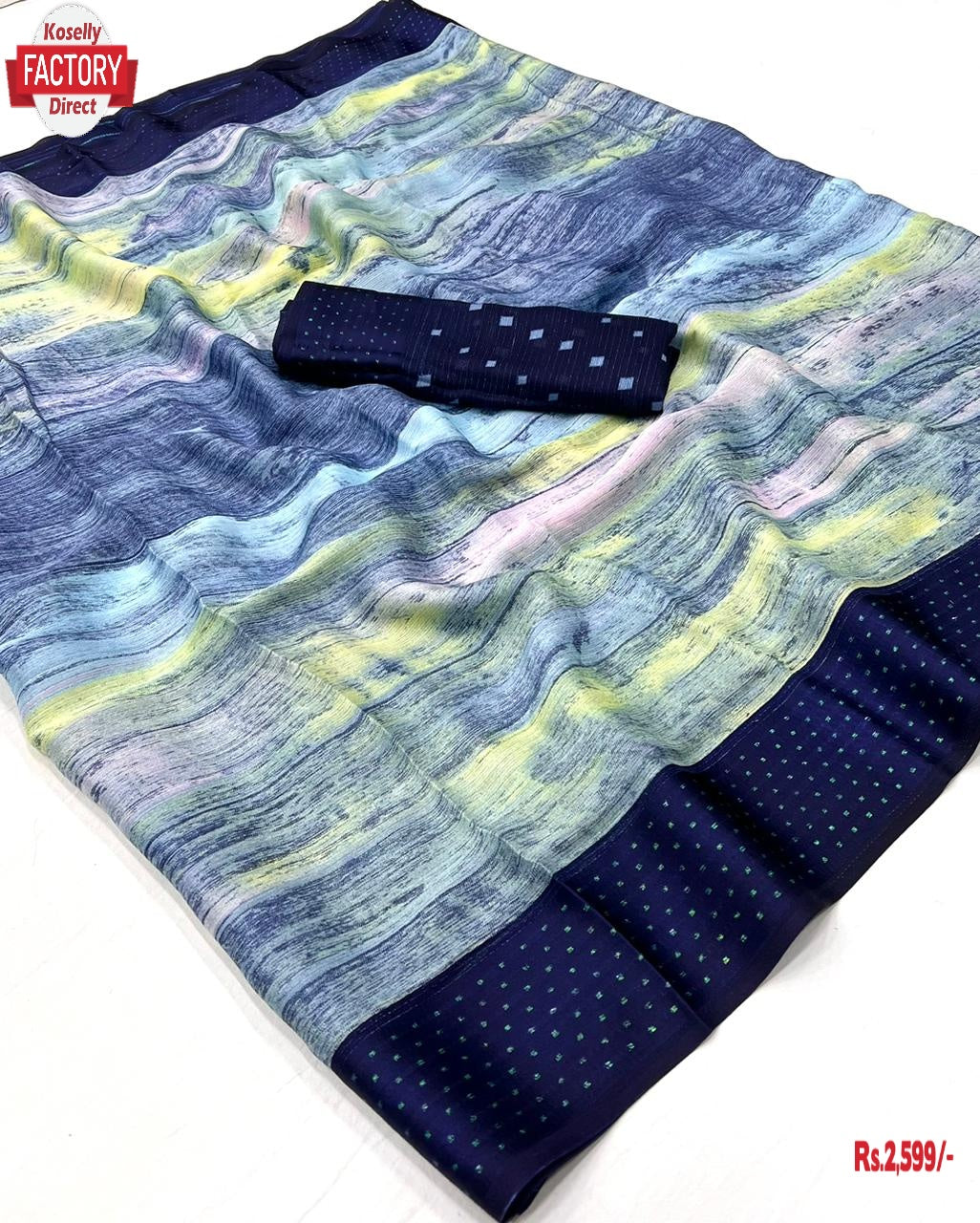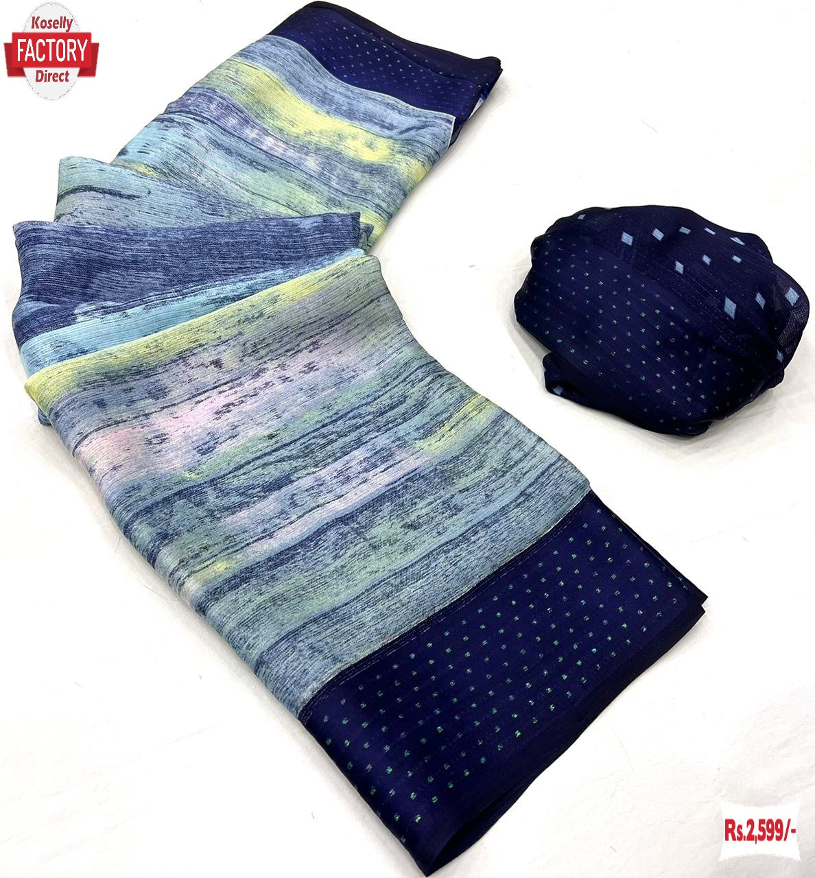 Blue Multi-colour Chiffon Abstract Printed Saree