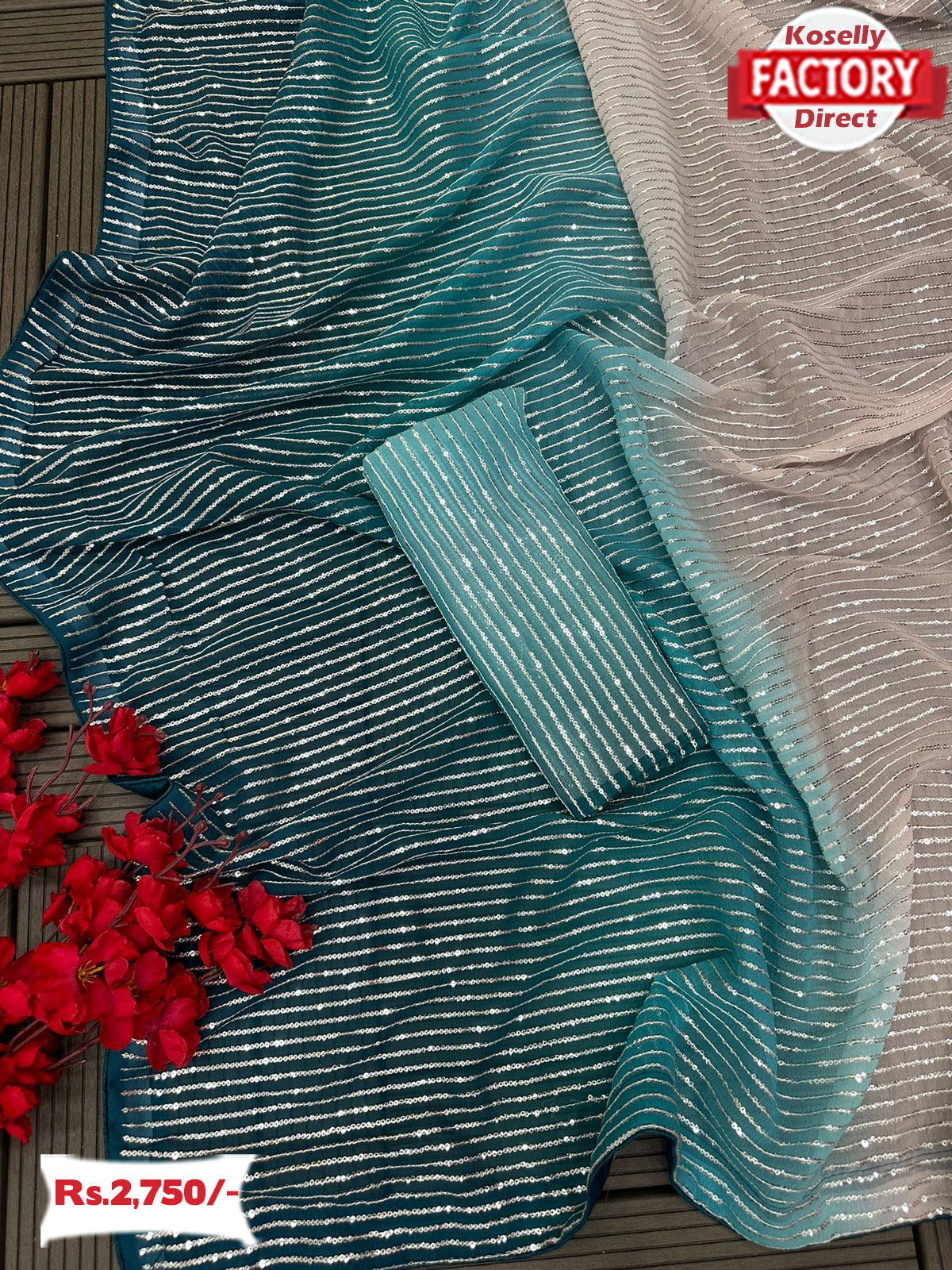 Blue Multi-shaded Georgette Sequins Worked Partywear Saree