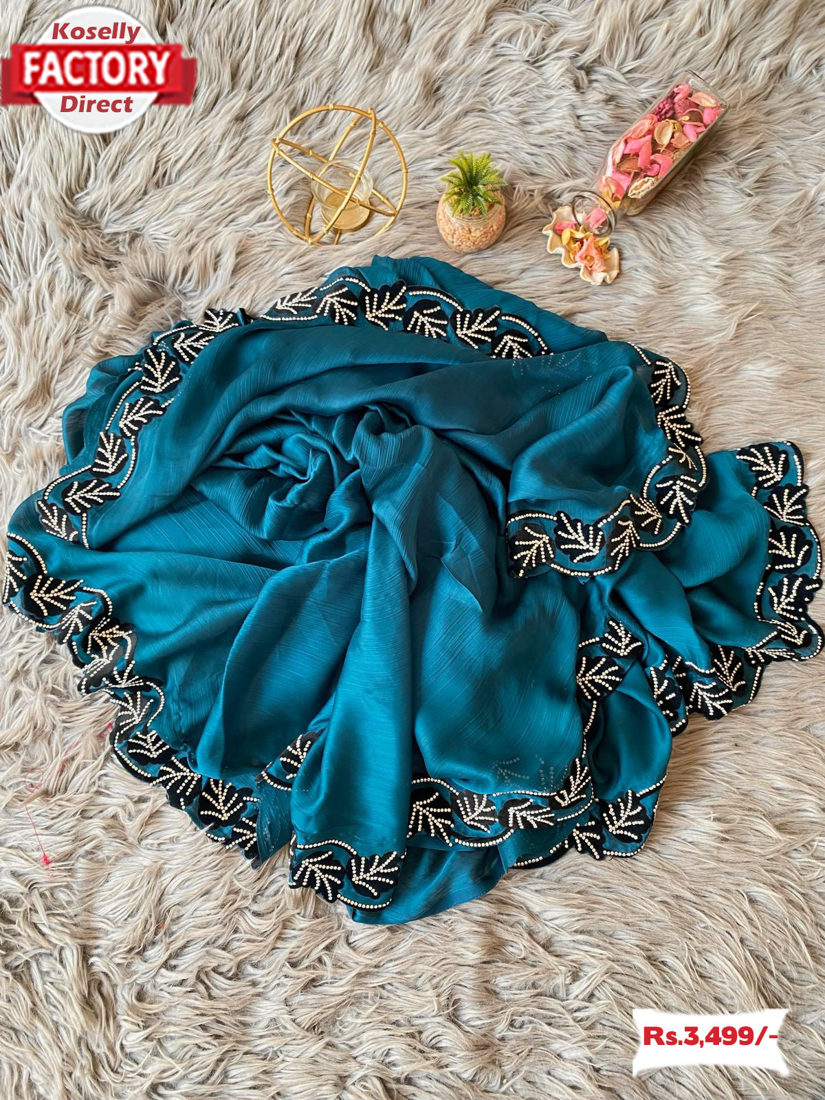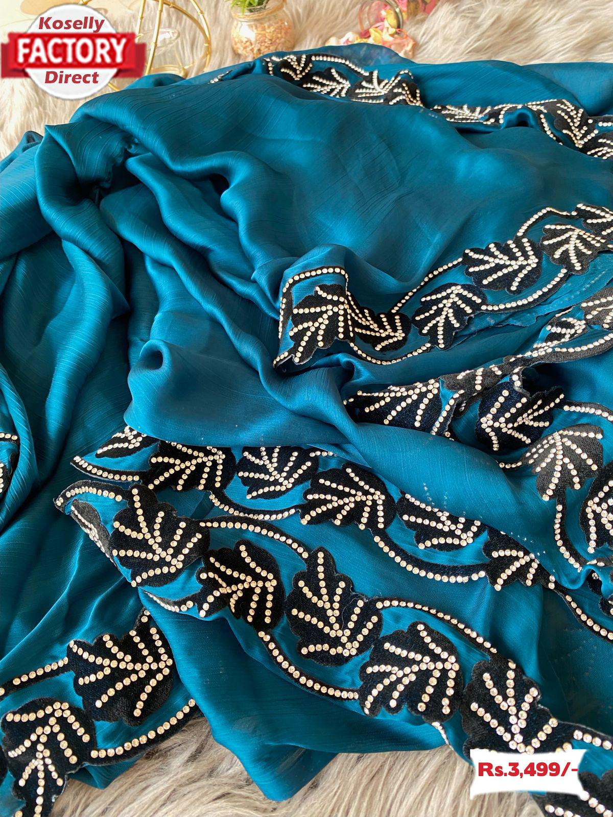 Pure Chiffon Saree With Heavy Velvet With Zircon Stone Work And Cut-work border.