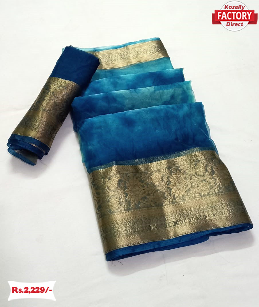 Blue Shibori Dyed Pure Organza Banarasi Border Saree