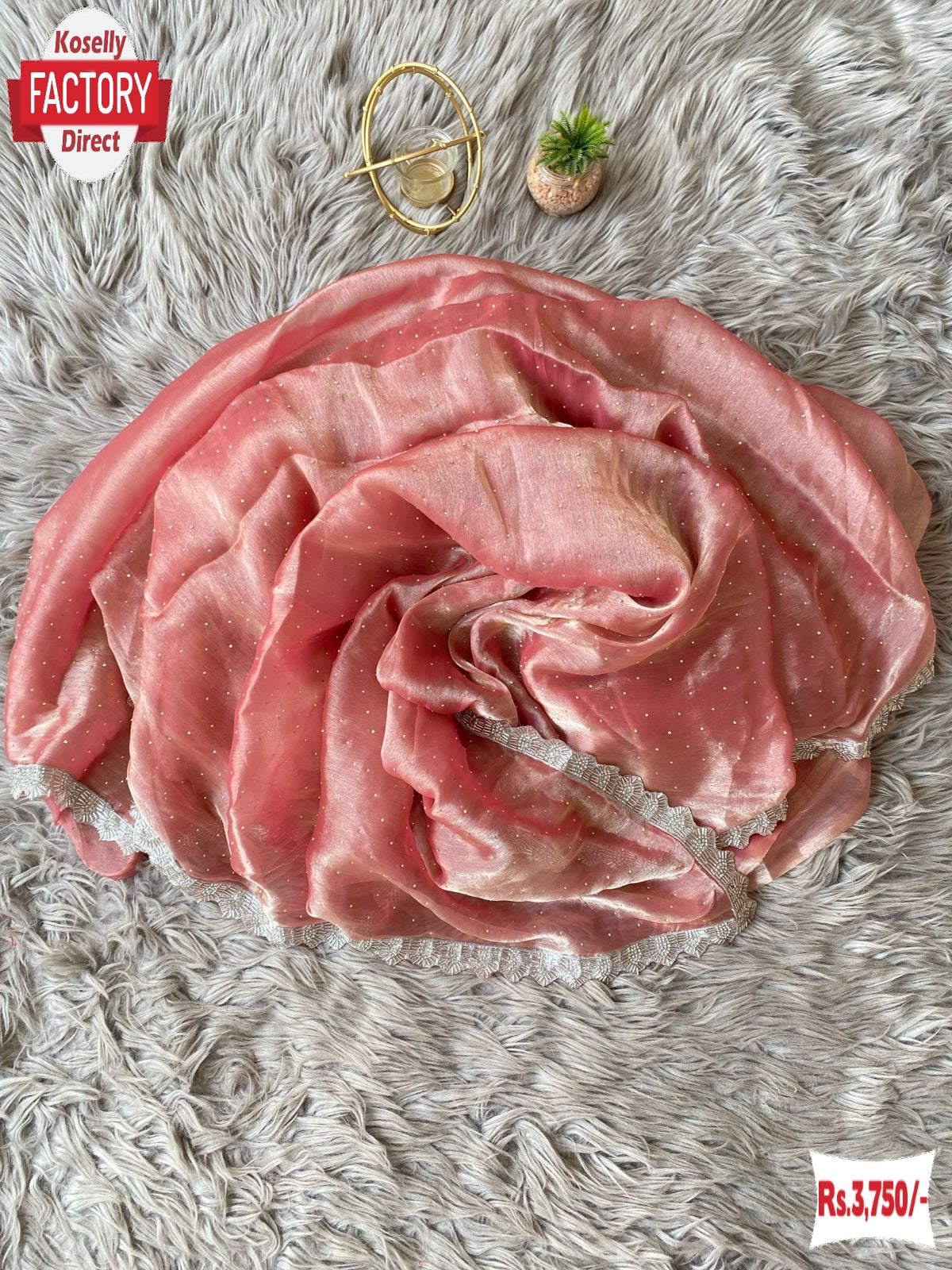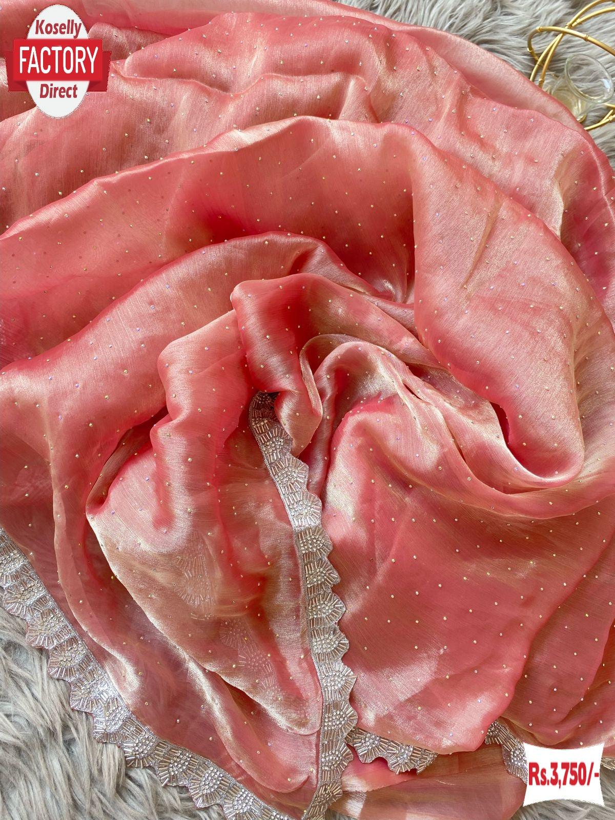 Dark Peach Jimmy Choo Zarkan Border Partywear Saree