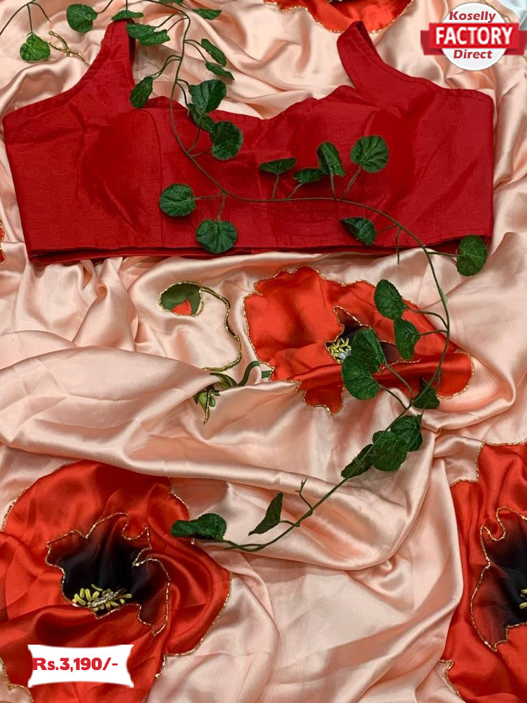 Pure soft japan satin silk saree with beautiful heavy handwork khatli in all over saree with khatli border and stylish & fancy samosa latkan on pallu. Comes with stitched and un-stitched both blouse.