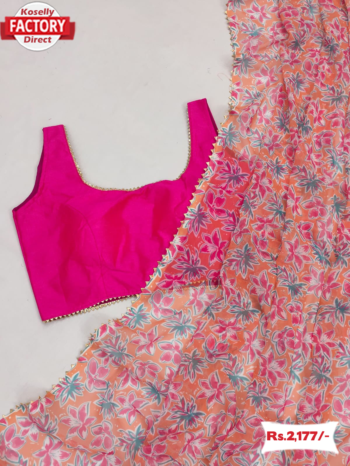 Digital Printed Faux Georgette Saree With Readymade Blouse