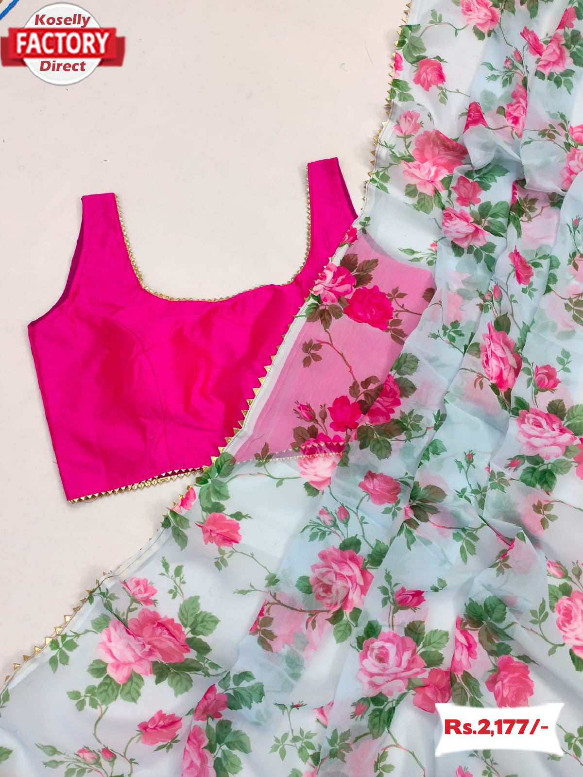 Digital Printed Faux Georgette Saree With Readymade Blouse