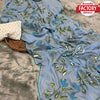 Dusty Blue Georgette Silk Hand-painted Saree