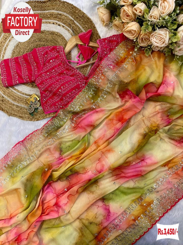 Green Multi-colour Rangoli Silk Prism Print Partywear Sequins Worked Saree
