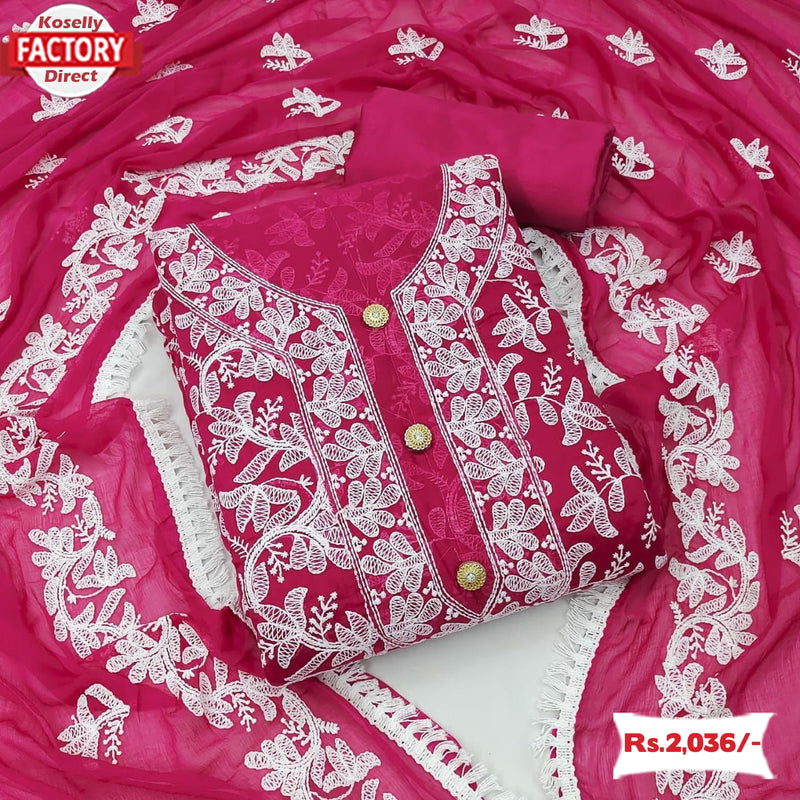 Hot Pink Embroidered Kurtha Suruwal Piece