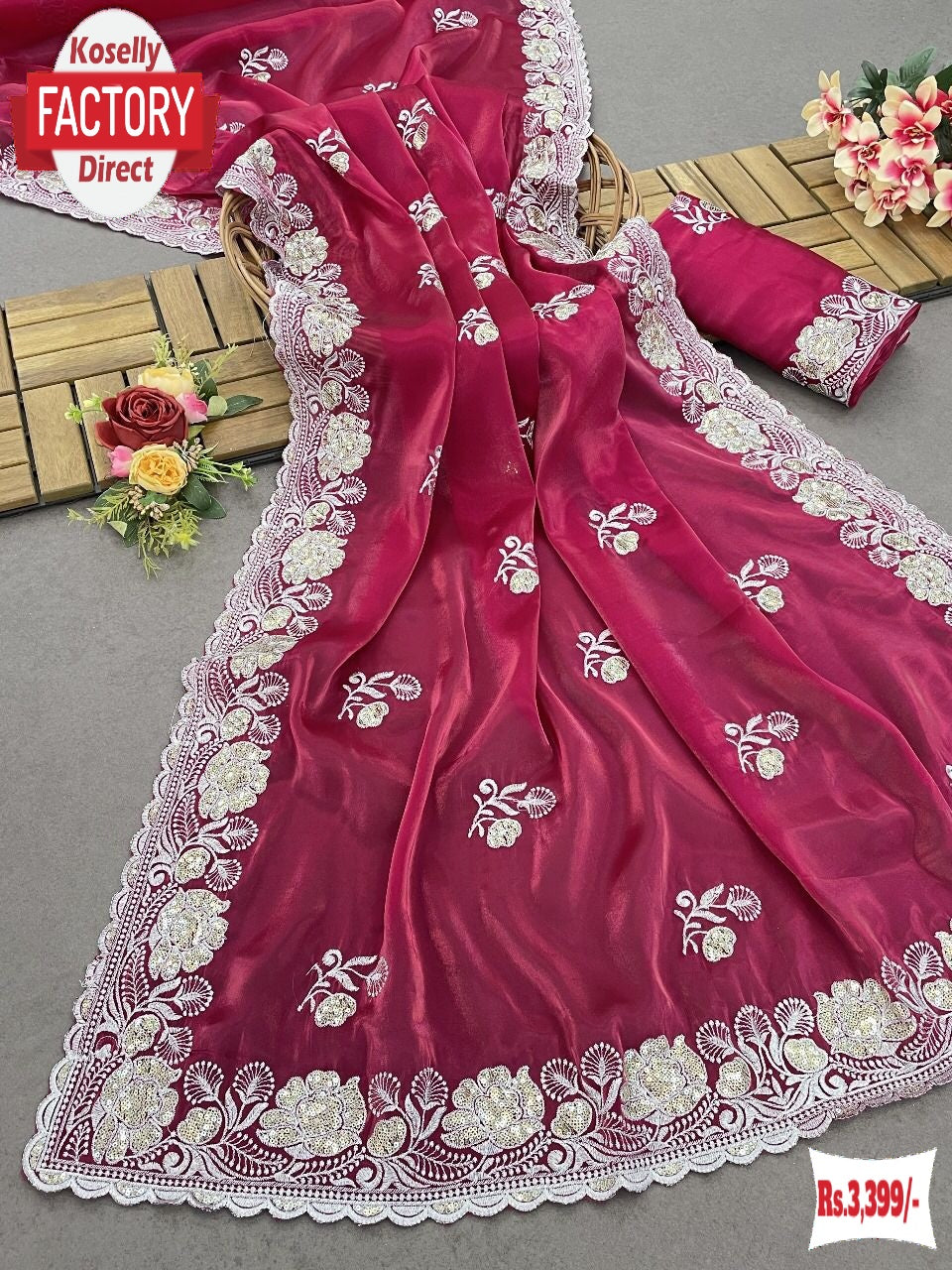 Hot Pink Jimmy Choo Silk Partywear Saree With Embroidery Work