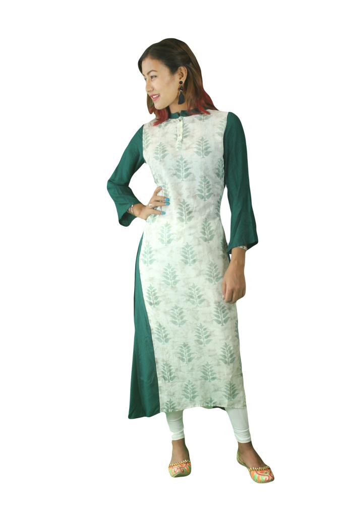Jenifry Green and White Kurthi top
