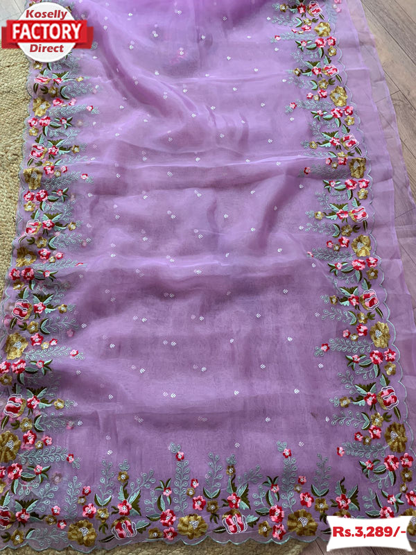 Heavy TATAMI Lucknowi multi-embroidery work with cut 6.30 mtrs with stone work