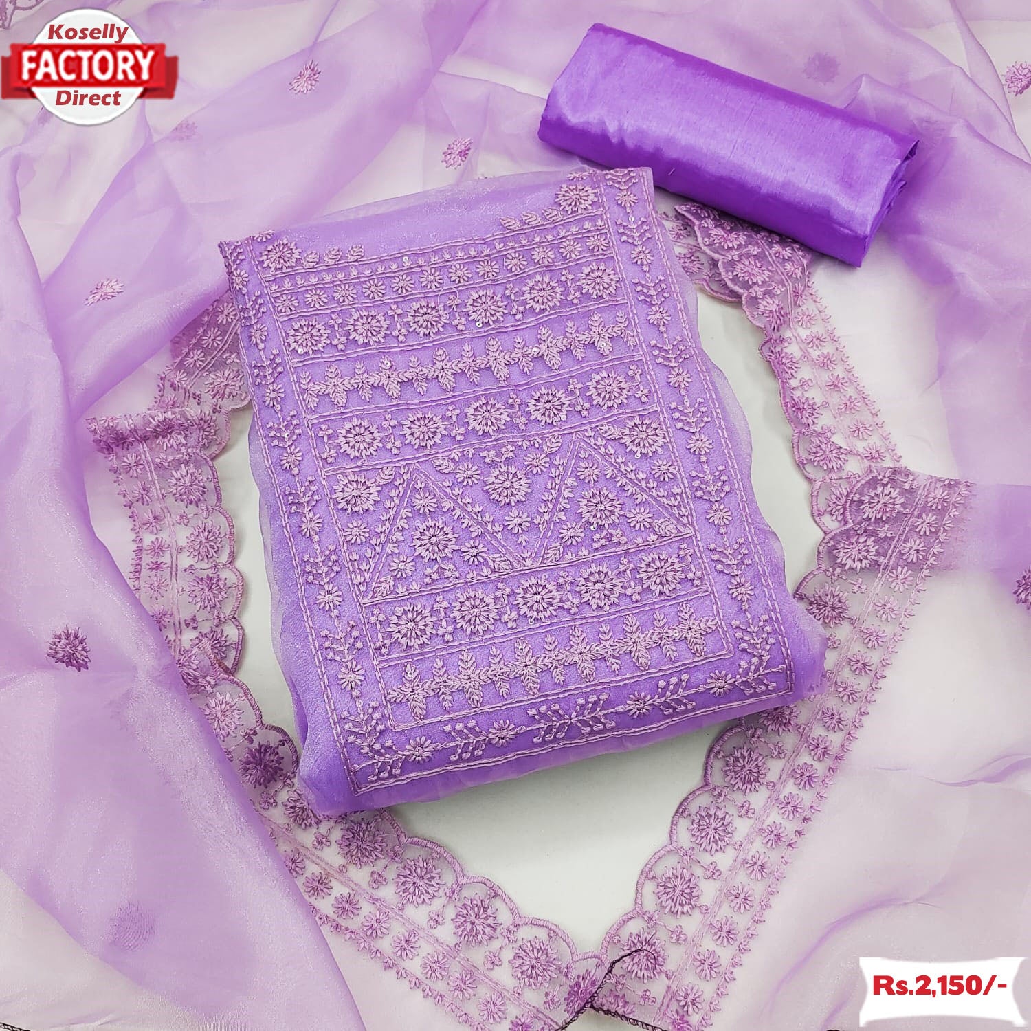 Lavender Organza Embroidered Kurtha Suruwal Piece