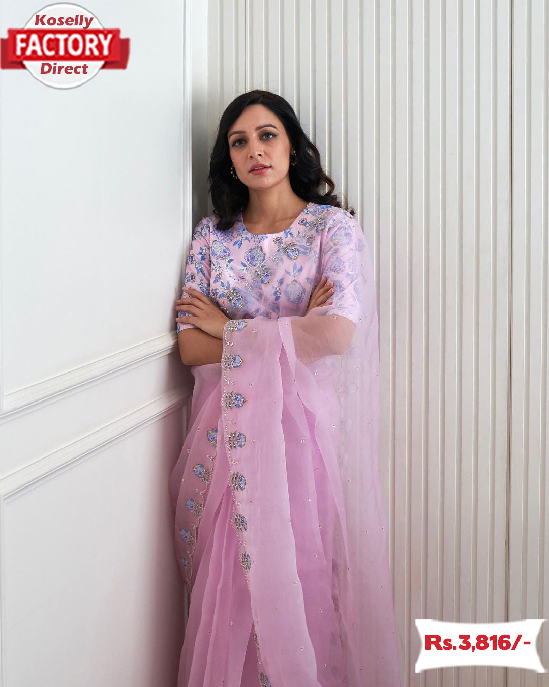 Lavender Organza Handwork Saree