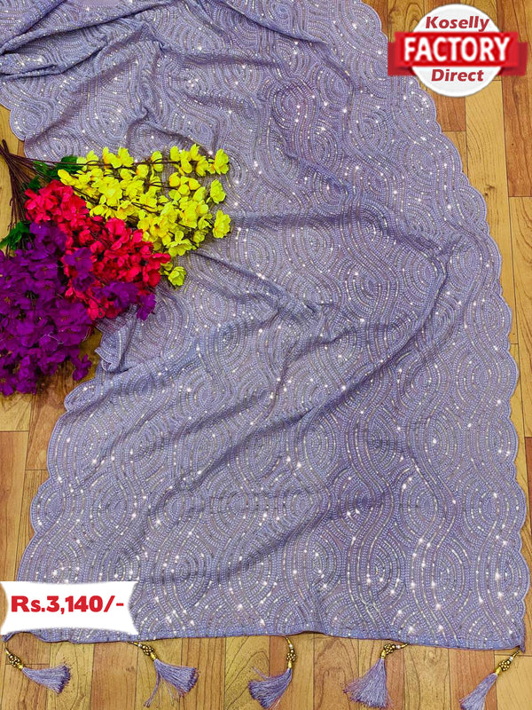 Lavender Pure Georgette Partywear Saree