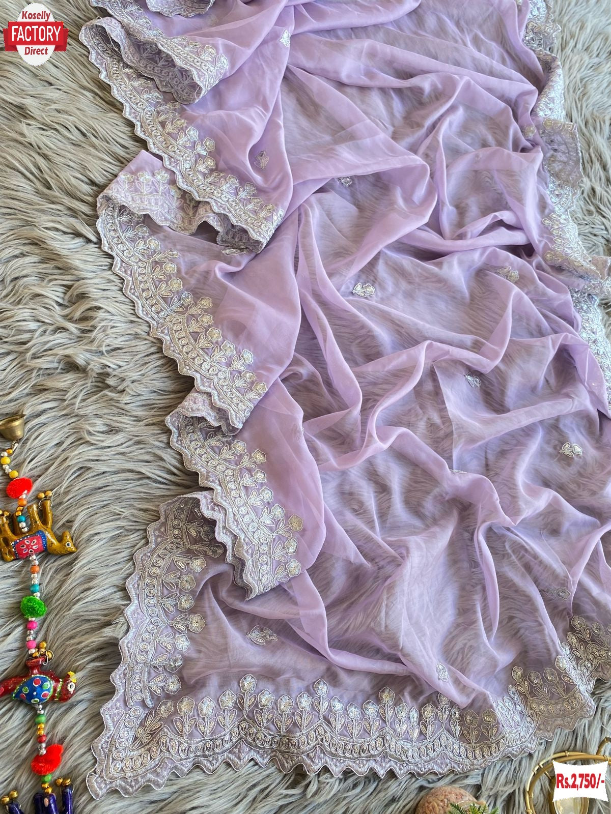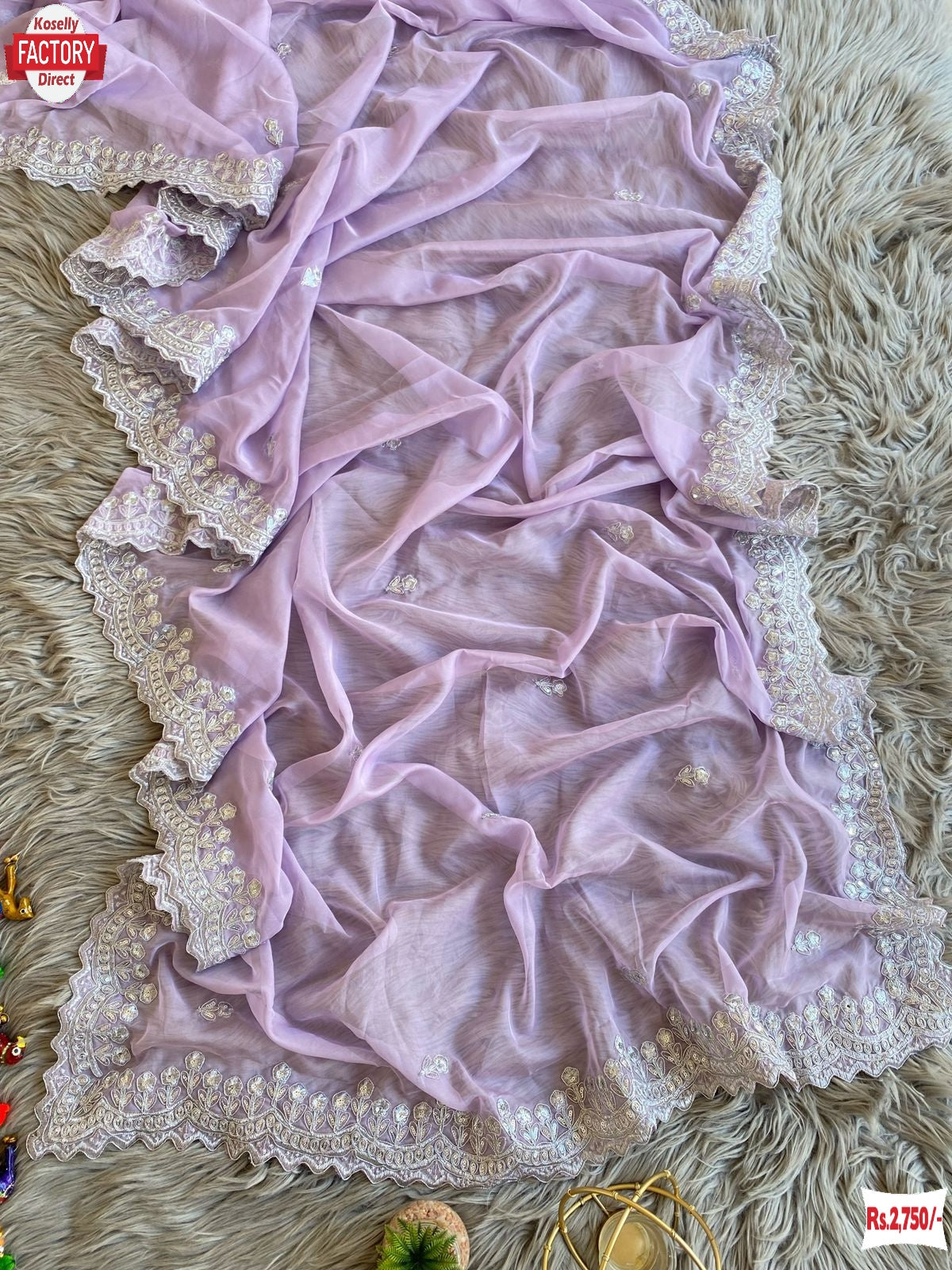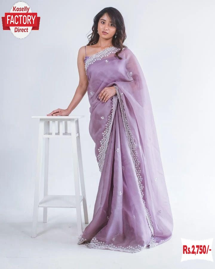 Lavender Pure Soft Organza Partywear Saree