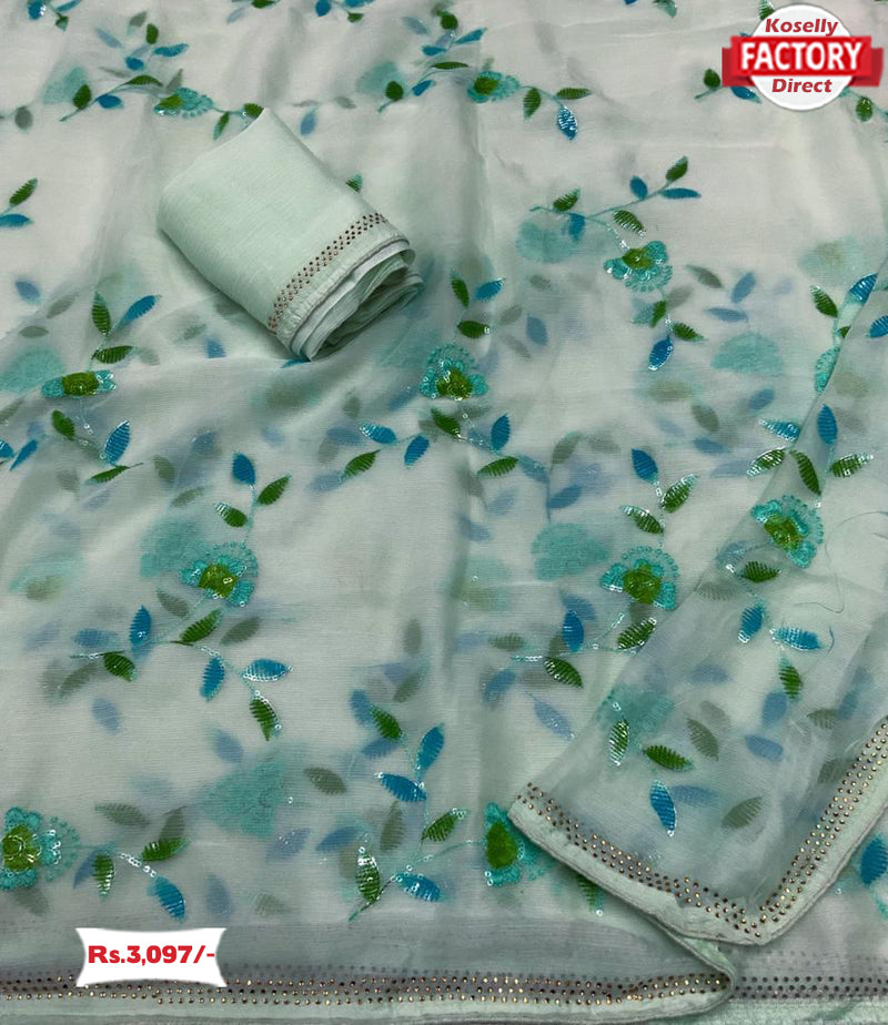 Light Blue Chiffon Multi Embroidery Saree