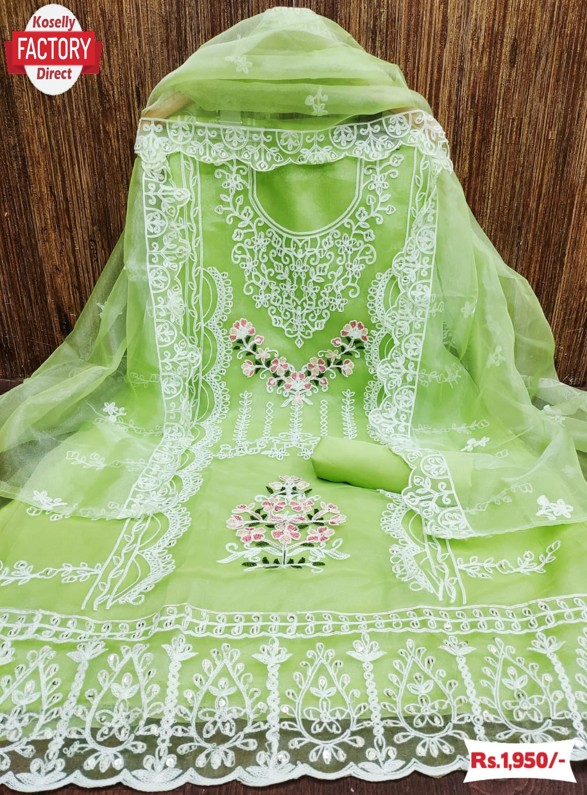Light Green Organza Embroidered Kurtha Suruwal Piece