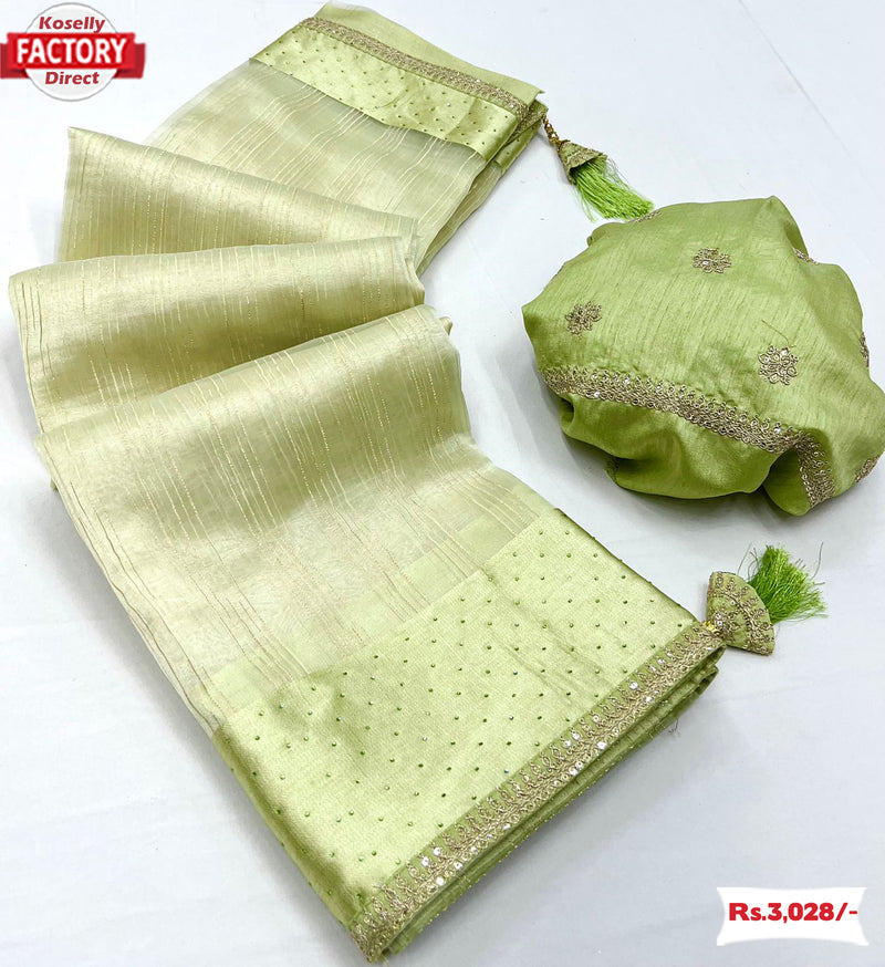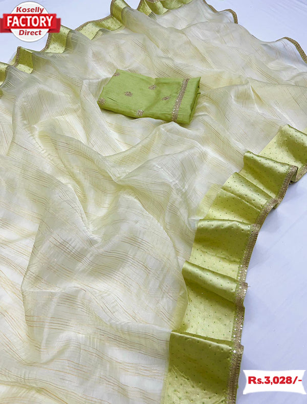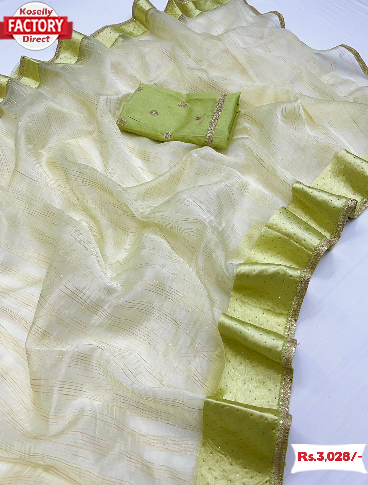 Fabric: Soft Organza Jacquard Weaving Fabric With Stone Work And Sequins Coding Work Border With Fancy Latkan And Banglori Embroidery Work Blouse