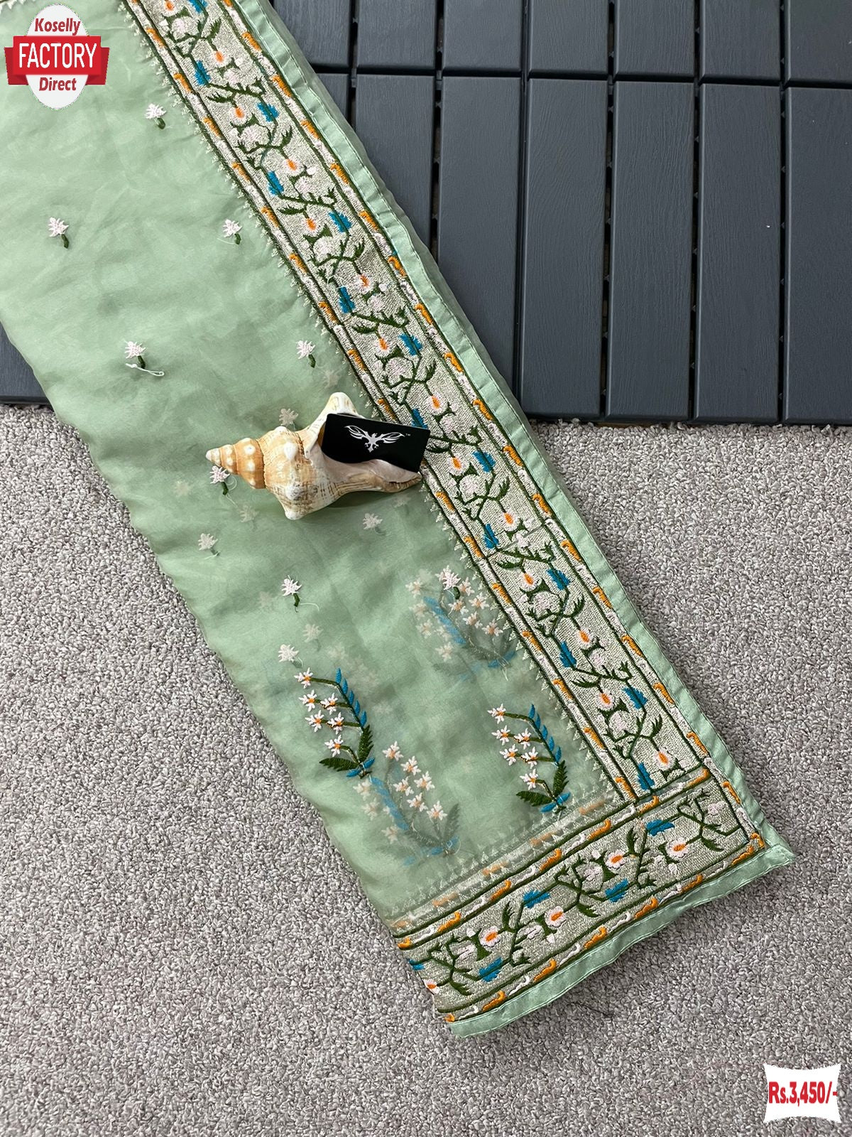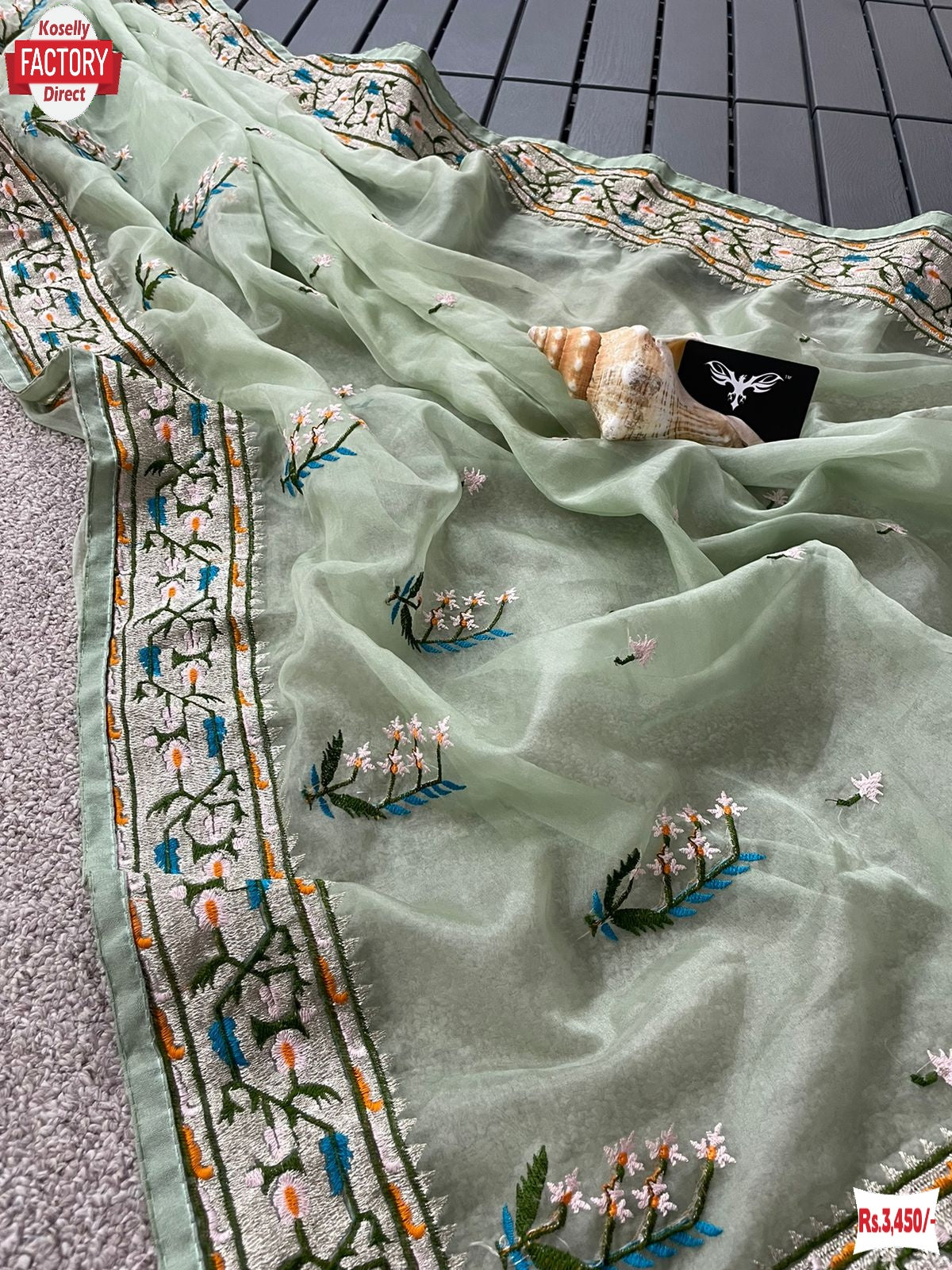 Light Green Pure Soft Organza Partywear Saree